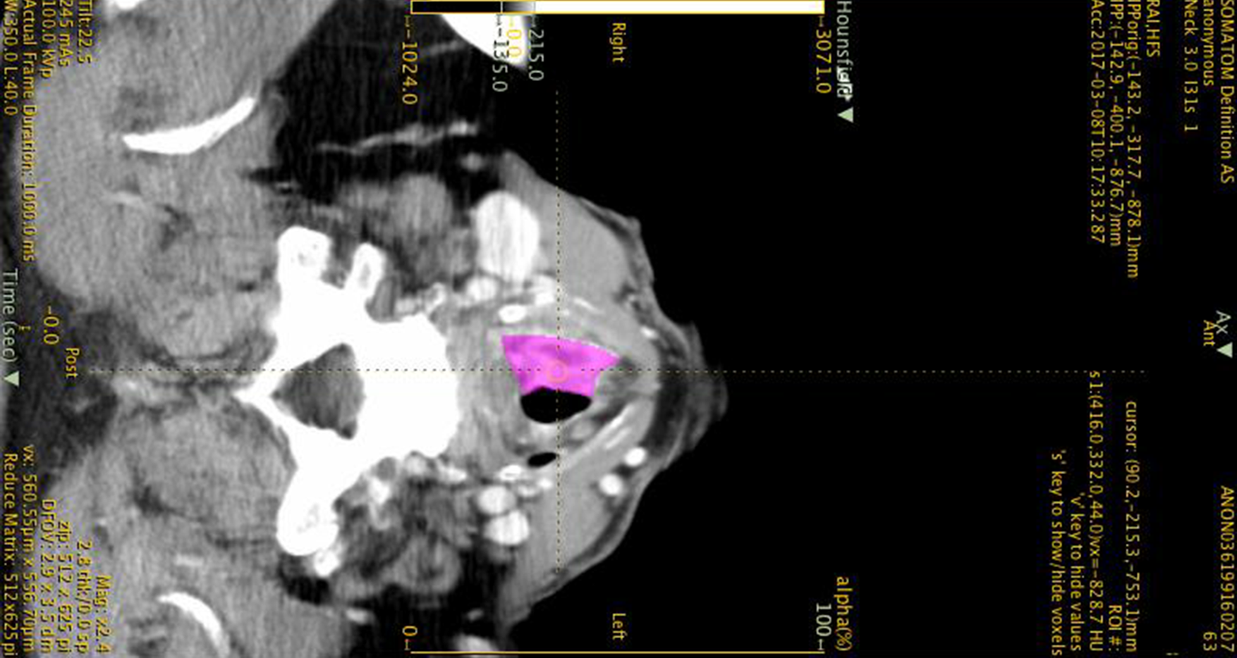 Advanced laryngeal cancers are clinically complex; there is a paucity of modern decision-making models to guide tumour-specific management. This pilot study aims to identify computed tomography-based radiomic features that may predict survival and enhance prognostication.