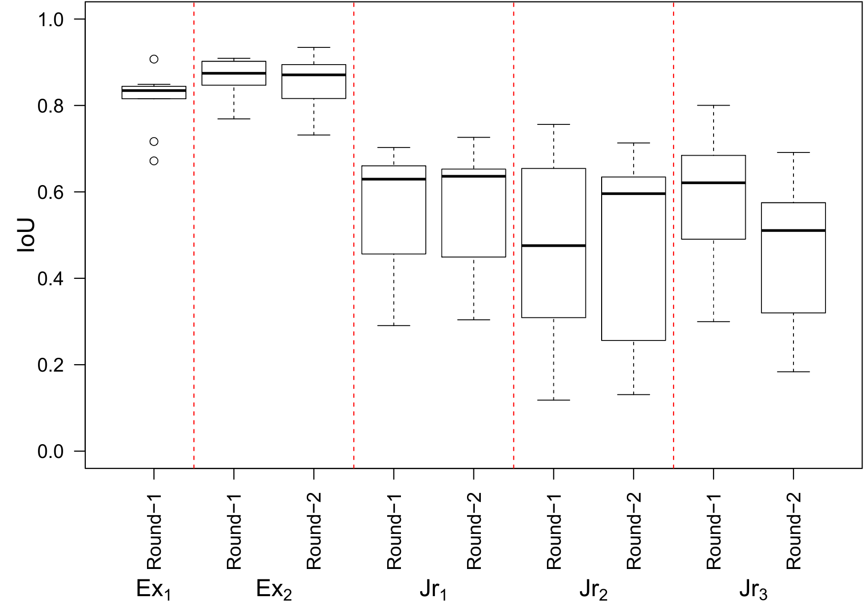 We evaluate the quality of diabetic macular edema (DME) intraretinal fluid (IRF) biomarker image annotations on OCT B-scans from five clinicians with a range of experience. Our investigation shows a notable variance in annotation performance, with a correlation that depends on the clinician's experience with OCT image interpretation of DME.