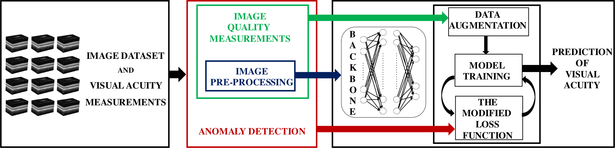 The framework is combined with a deep learning approach to automatically predict visual acuity outcomes for people undergoing surgery for idiopathic full-thickness macular holes using 3D spectral-domain optical coherence tomography images. To overcome the impact of high variation in real-world image quality on the robustness of DL models, comprehensive imaging data pre-processing, quality assurance, and anomaly detection procedures were utilised.