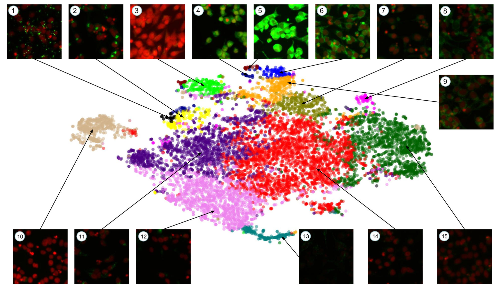 In this paper, we show how pre-trained convolutional image features can be used to assist scientists in discovering interesting chemical clusters for further investigation. Our method reduces the dimensionality of raw fluorescent stained images from a high throughput imaging (HTI) screen, producing an embedding space that groups together images with similar cellular phenotypes. Running standard unsupervised clustering on this embedding space yields a set of distinct phenotypic clusters. This allows scientists to further select and focus on interesting clusters for downstream analyses.